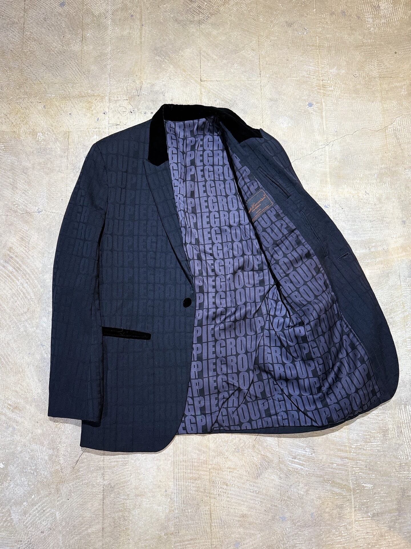 2002年秋冬“魔女期”より登場した、ブランドを象徴する総柄「GROUPIE」ジャガードのテーラードジャケット。