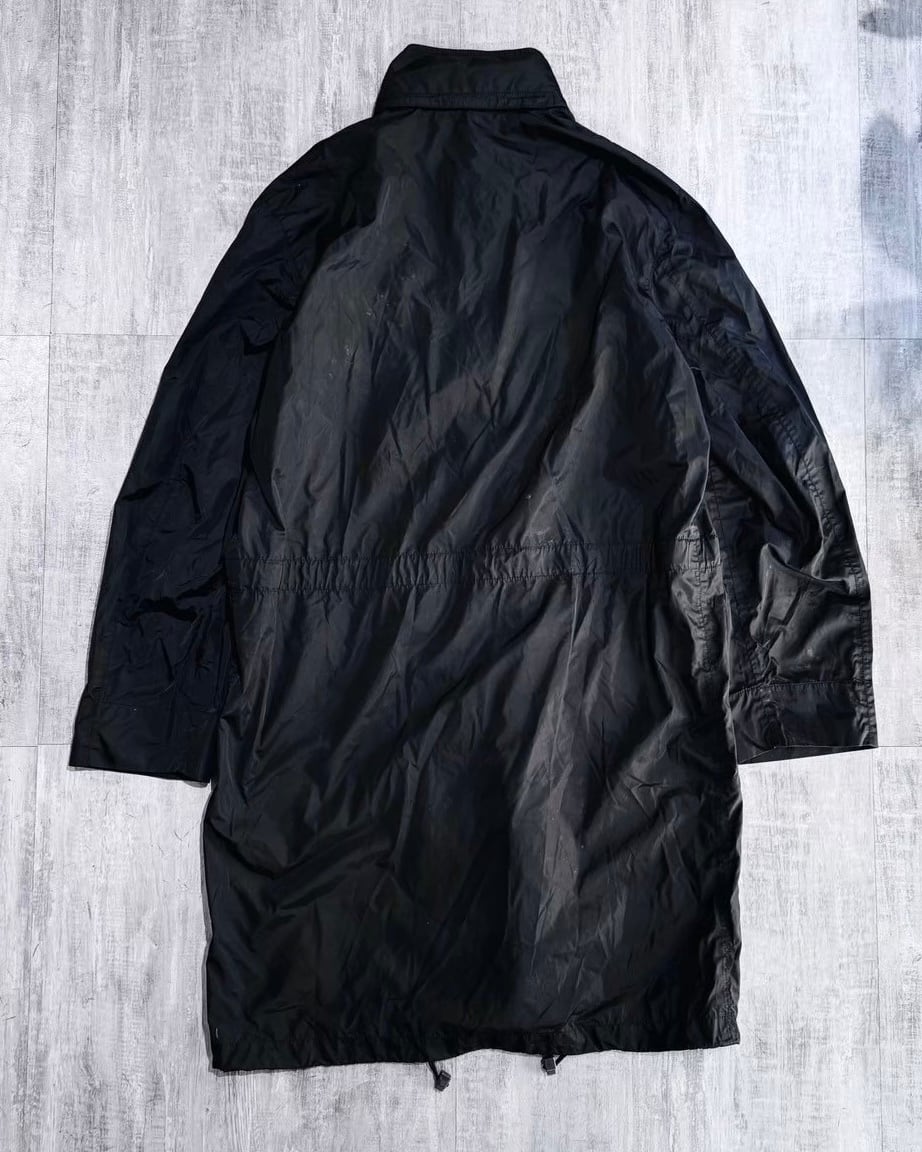 彼が手掛けたメンズウェアは、官能性とミニマリズムを融合させ、当時のラグジュアリーブランドの在り方を刷新しました。本作はその時代の中でも珍しい、ミリタリー由来のフィールドコートをモードへ昇華させたナイロンコートです。