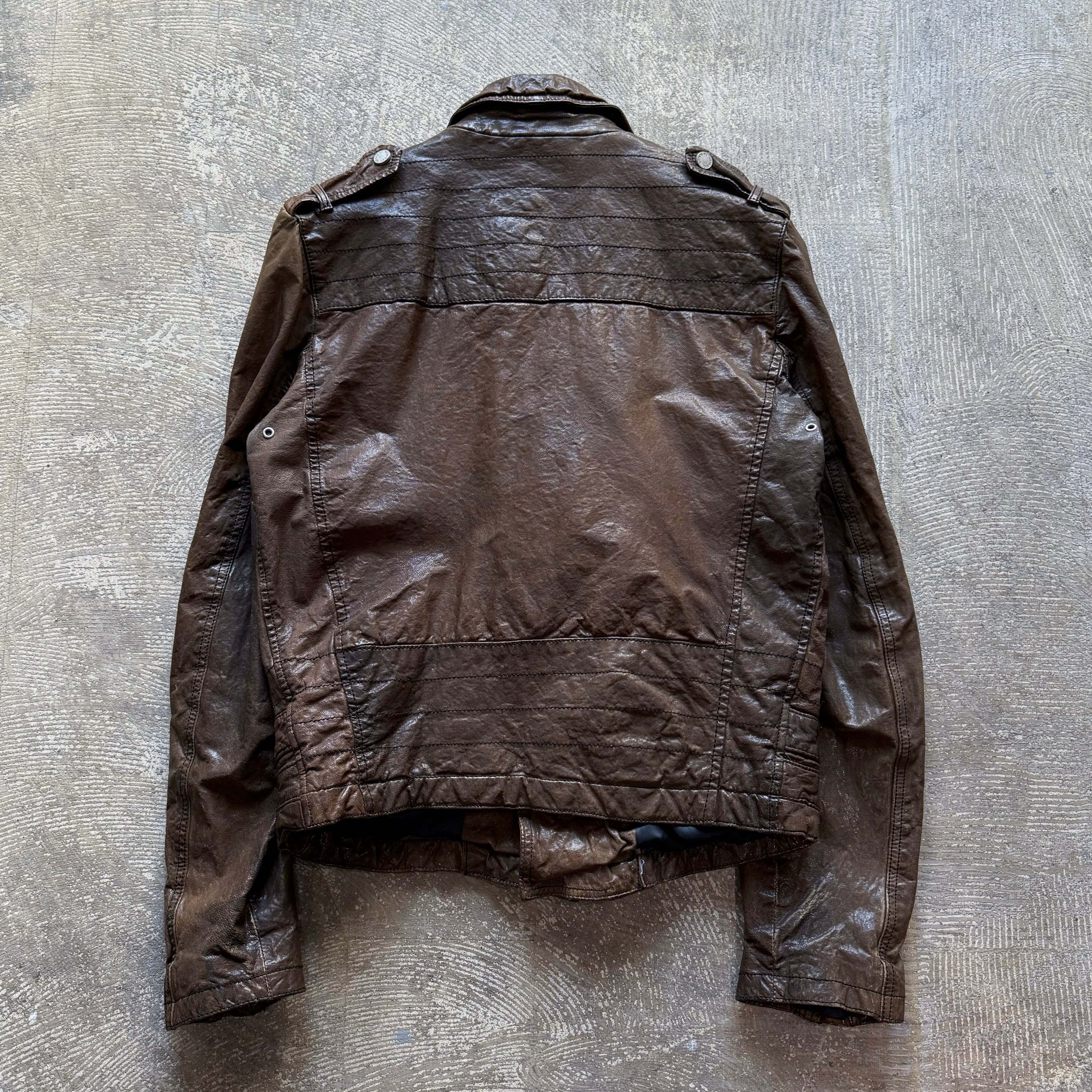 Neil Barrett Riri Zip brown Leather riders Jacket / Size S